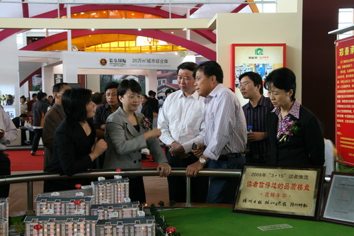 开幕式结束后,王燕文、张京霞走进展厅,视察了新能源花样年华展位,并听取了董事长包广林的汇报,对新能源开发的楼盘以及公司的经营的情况给予了高度的评价。